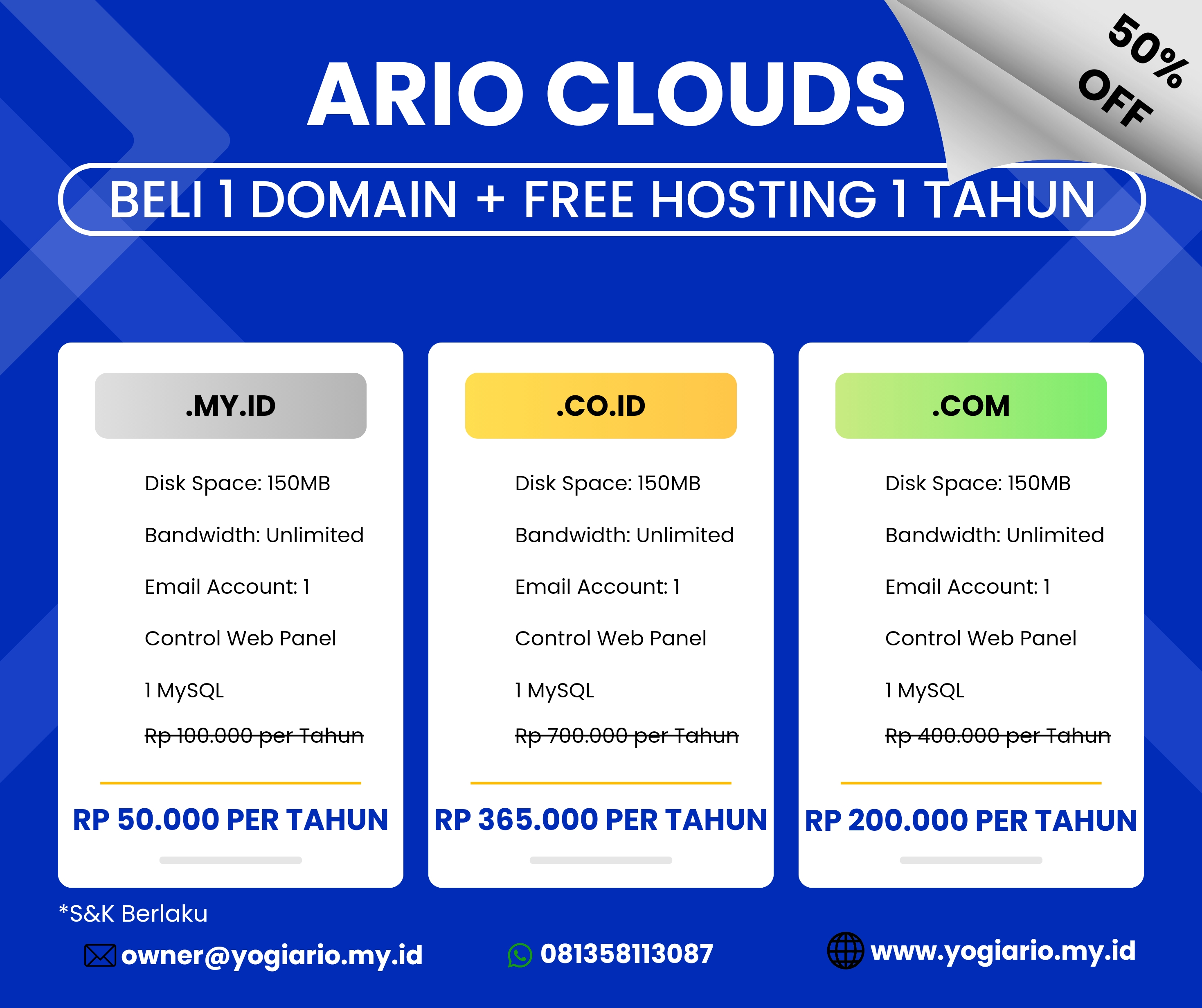 Tenang Ario Clouds memberikan layanan yang terjangkau untuk kebutuhan website anda tanpa ribet.