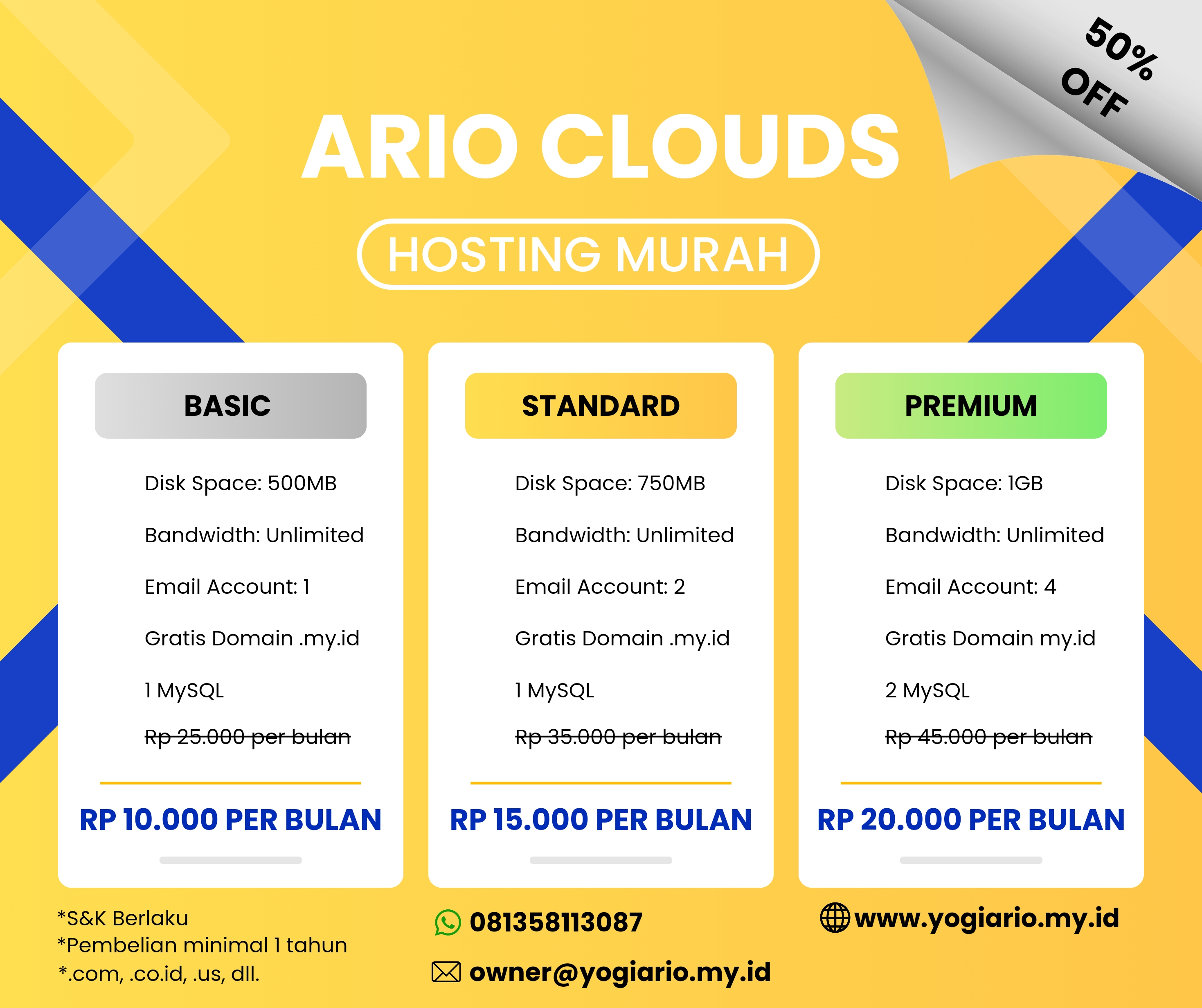 Tenang Ario Clouds memberikan layanan yang terjangkau untuk kebutuhan website anda tanpa ribet.
